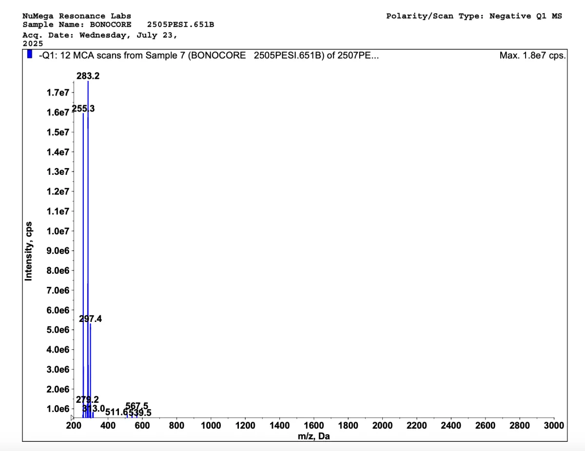 Bonomarlot vs Bonomarlot V2™ Validated by Peptide Science Institute Mass Spectrometry