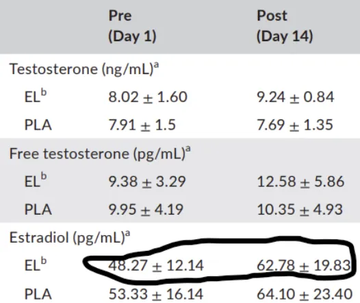 In a study involving men in their 20s, using a standardized 1.5-1.6% extract of Eurycomanone at 600mg/day for 2 weeks there was a 30% increase in estrogen and 15% increase in testosterone, leading to a worsened testosterone: estrogen ratio ³.