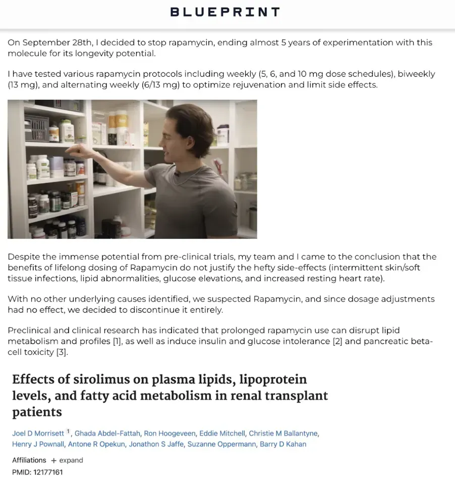 Blueprint had already applied multiple measures that suppress growth signaling and activate AMPK such as chronic calorie restriction, frequent fasting, high training volume, and metabolic stressors.